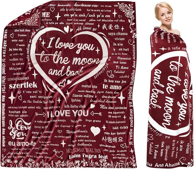 Throw Blanket with 100 Language saying, I Love You